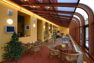 Kardio zóna volně navazuje na prostory posilovny. je umístěna v exkluzivním prostředí zimní zahrady. Vybavena professionálním běhacím pásem, steppery a eliptory italského výrobce Runner s.r.l. (http://www.runnerfitness.it) a stacionárními koly GRÜN SPORT s.r.o. (http://www.grunsport.eu/). Kardiostroje jsou ideálním nástrojem k zahřátí organismu před cvičením, pro tréninky na redukci podkožního tuku nebo mohou sloužit jako doplněk ke všem ostatním sportovním aktivitám. Při pravidelném cvičení na kardiostrojích posílíte kardiovaskulární systém při aktivitě, která prakticky nezatěžuje žádný z kloubů dolních končetin - hlezenní, kolení ani kyčelní.